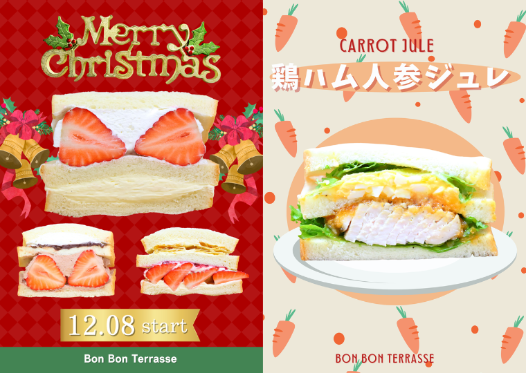 こだわりの高級食パンで作ってます 店内風景 テラス席風景 お知らせ Bon Bon Terrasse2025.12.0112月の新商品・メニューを掲載いたしました Bon Bon Terrasse2025.11.0411月の新商品・メニューを掲載いたしました Bon Bon Terrasse2025.09.2910月の新商品・メニューを掲載いたしました Bon Bon Terrasse 今月のおすすめサンドイッチ 苺生カスタード 税込 525 円 苺チョコ 税込 500 円 苺のミルフィーユ 税込 585 円 鶏ハム(人参ジュレ) 税込 410 円 ホットサンド(チーズタッカルビ) 税込 395 円 ヤンニョムチキン 税込 500 円 bon_bon_terrasse Bon Bon Terrasse Instagram ☆5月のメニュー表☆ 新商品の鶏ハム ★越谷の苺★ ●苺ミルフィーユ ●苺 ★4月のメニュー表★ 新作の苺レアチ さらに読み込む... Instagram でフォロー 営業日カレンダー
